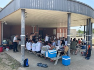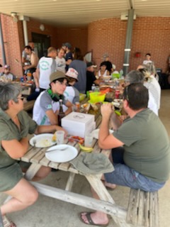 Pause déjeuner sur le trajet... nos archers étaient accompagnés des jeunes de Auch pour le déplacement